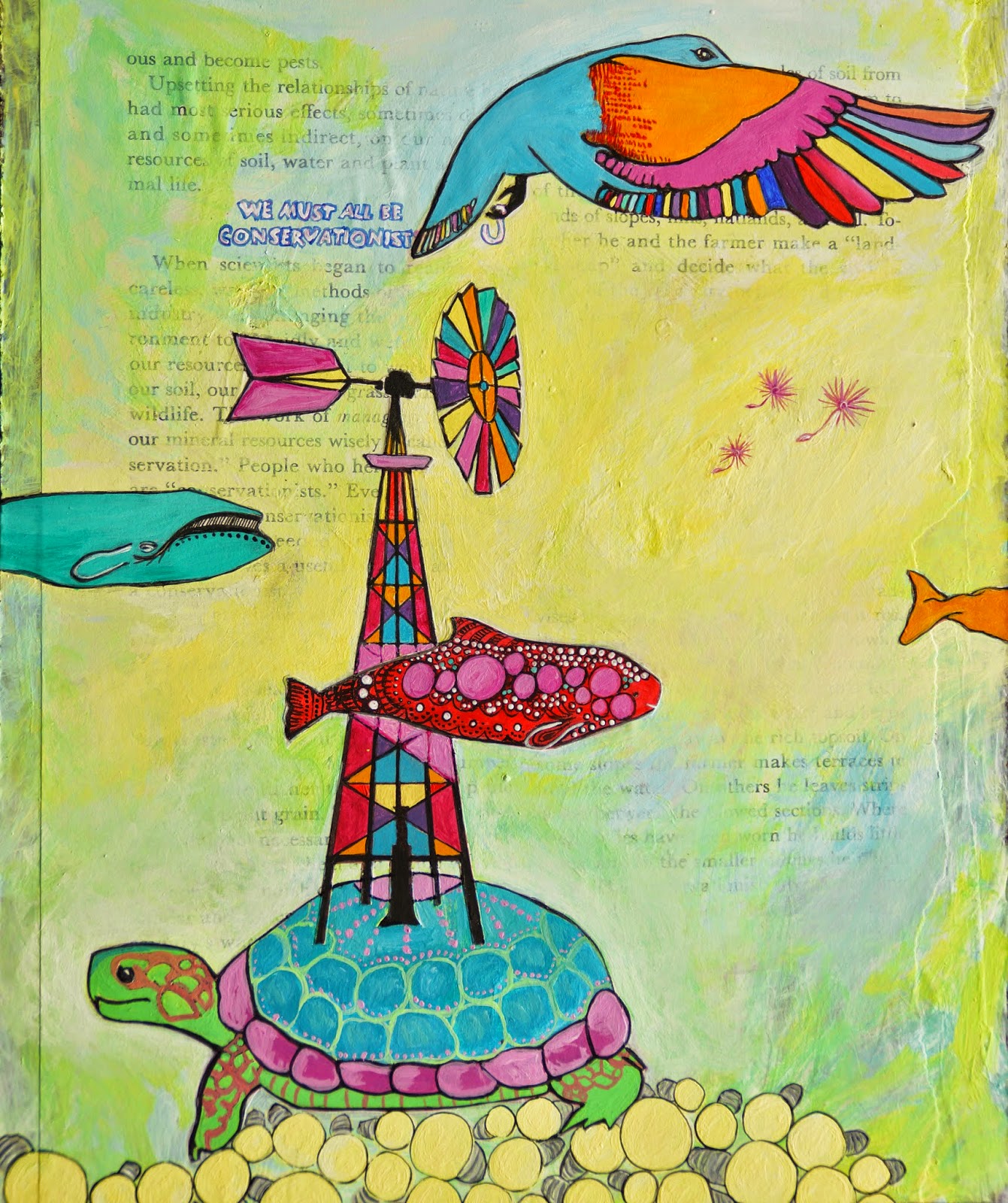 It began after all the busyness of the holidays. My mind would go straight to creative endeavors though my hand didn't follow until much later. Inspiration flowed through old books, collage, color, shapes, memories of coloring books, a wonderful group art experience at my cousin April's baby shower, browsing endless art books and creative blogs. One moment a few weeks ago, I jumped right in...the first painting was a springboard to what followed.